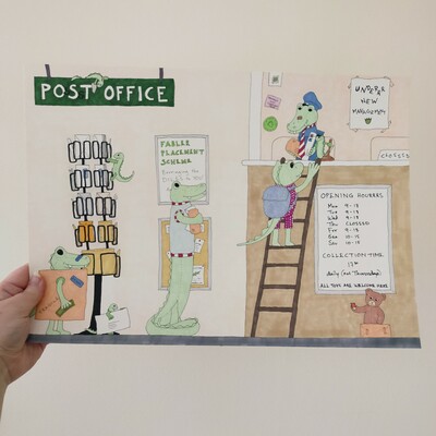 I’m a Swedish artist and illustrator based in Wales, and I specialise in clean linework and cute illustrations. I mostly draw adorable crocodiles or museum objects but I do a bit of everything!