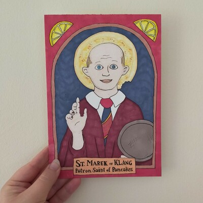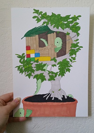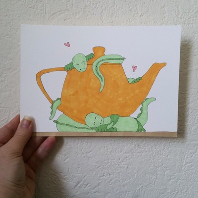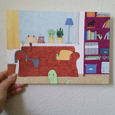 - Drawings will be A6 in size, inked and coloured by hand, and signed on the back